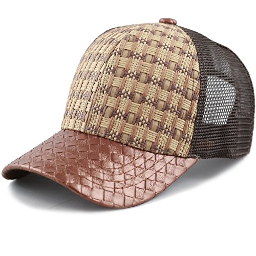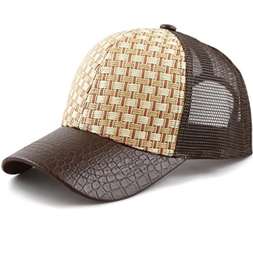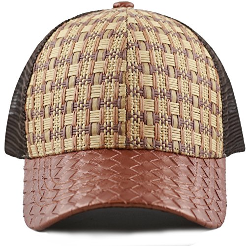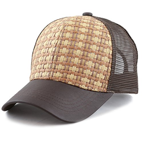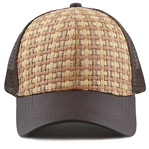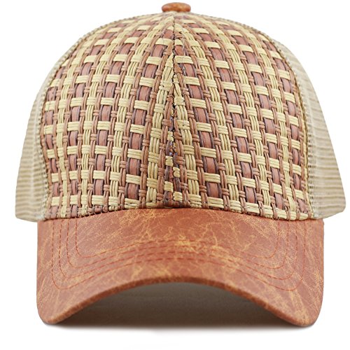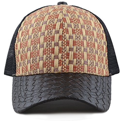 The Hat Depot Straw Raffia Mesh Back Trucker Snapback Cap