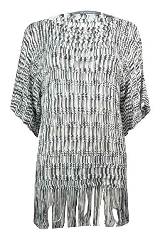 NY Collection Women's Fringe Hem Poncho Sweater