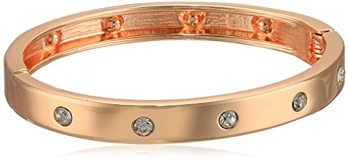 -. Feature : Rose Gold tone narrow hinge bangle with crystal accents