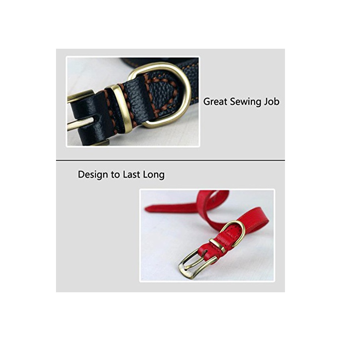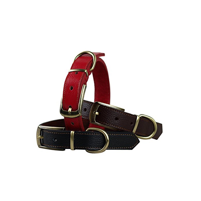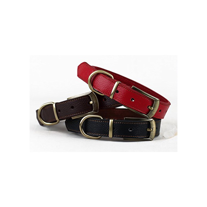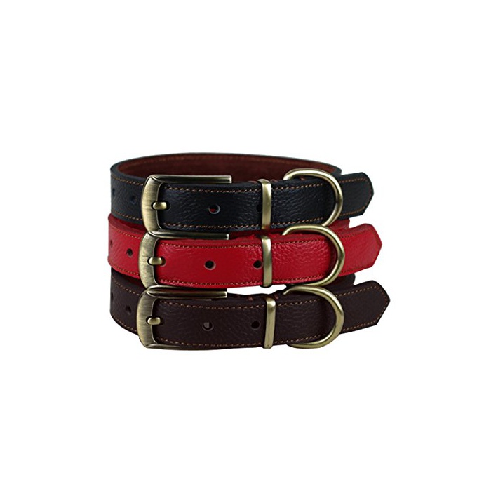 Rantow 튼튼한 레더의 클래식 애완동물 도그 컬러,조절 가능한 넥 사이즈35cm45cm,폭2.5cm 소형 또는 중형견을 위한 조정 가능한견의 목걸이