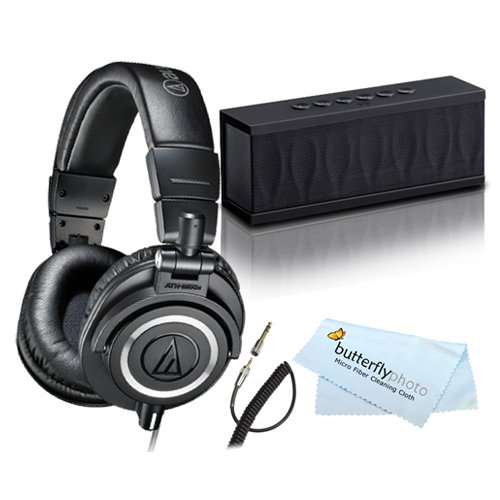 Audio-Technica ATH-M50x Studio Monitor Headphones and Photive Cyren Portable Wireless Bluetooth Speaker with Built in Speakerphone, Black