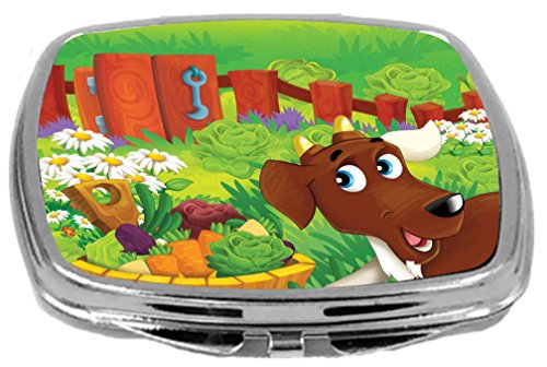Rikki Knight Cute Brown Ram Cartoon with Farm Vegetables Design Compact Mirror, 17 Ounce