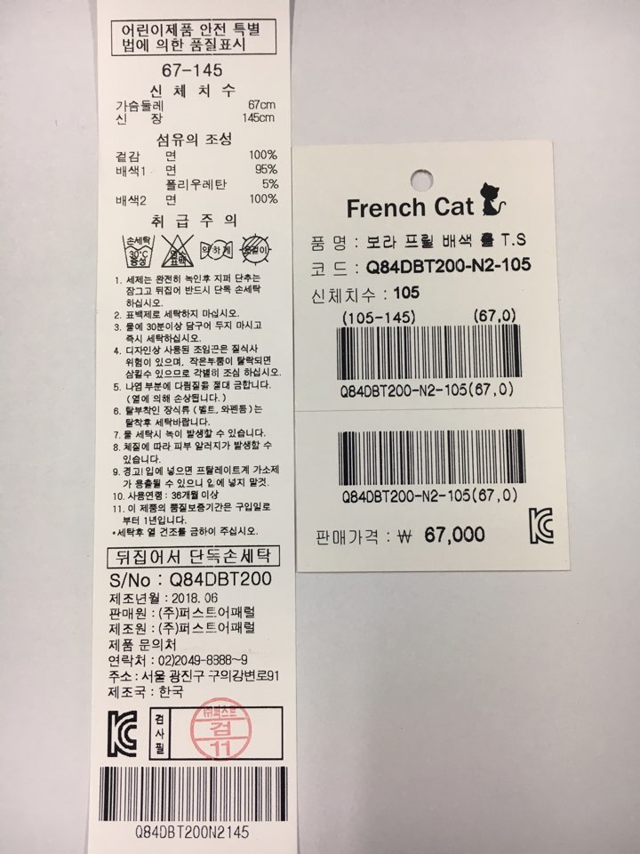 제품소재 : 겉감 면 100% 배색1 면95% 폴리우레탄5%배색2 면 100%