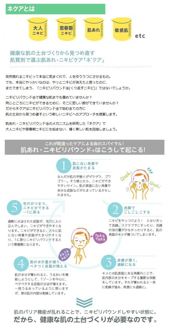 | <h1>発売2年でリピーター続出!!数々の女性誌で紹介された肌質別ニキビケアシリーズ!!</h1> |