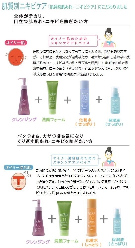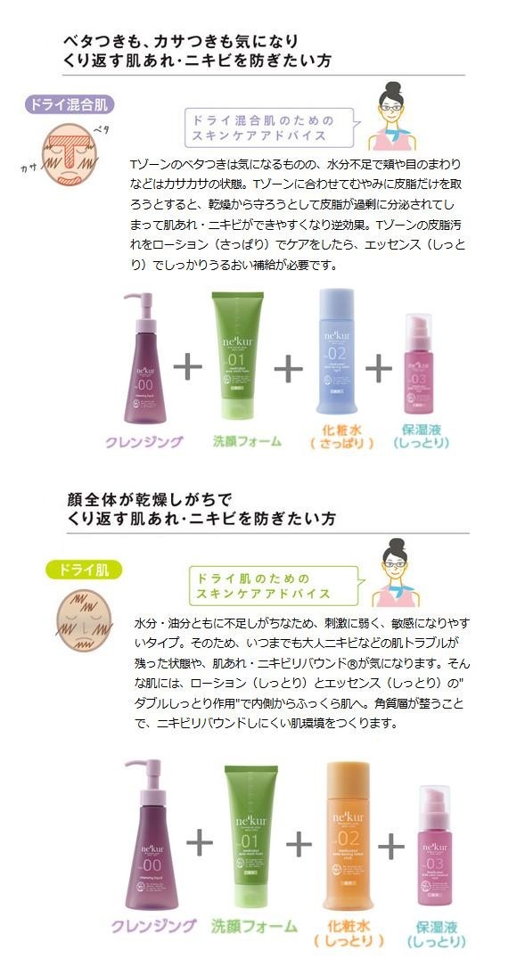 | オーガニックスキンケアの先進国、オーストラリアのスキンケア発想から生まれたニキビで悩む方のためのスキンケア。このネクア シリーズは、思春期ニキビや大人ニキビなどの年齢別ではなく、油分と水分の違いによって4つの肌質別に分け、その肌質にもっとも適したニキビケアを提案し ます。この商品は、ドライ混合肌やドライ肌で悩む方へおすすめするしっとりの保湿液です。 |