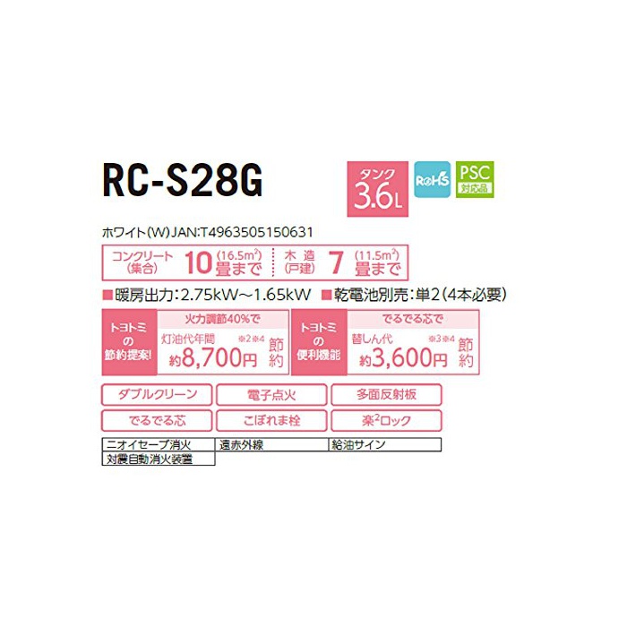 원본상품명:TOYOTOMI 石油ストブ(ダブルクリン ) 「コンクリト10/木造7」 日本製 ホワイト RC-S28G(W)