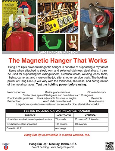 Hang Em Up Large Magnetic Hanger - Holds Fire Extinguishers, Tools, Lights and More!