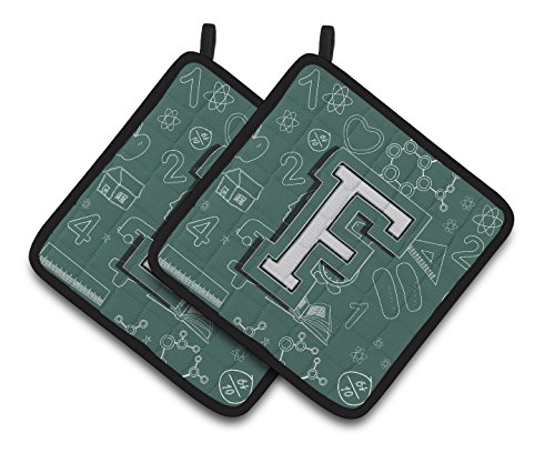 Caroline's Treasures Letter F Back To School Initial Pair of Pot Holders CJ2010-FPTHD, 7.5HX7.5W, Multicolor
