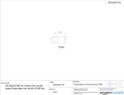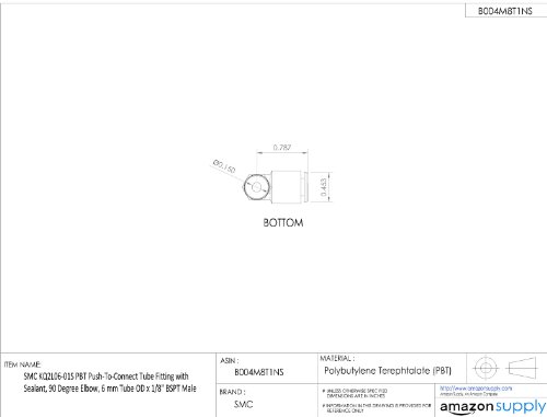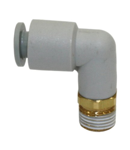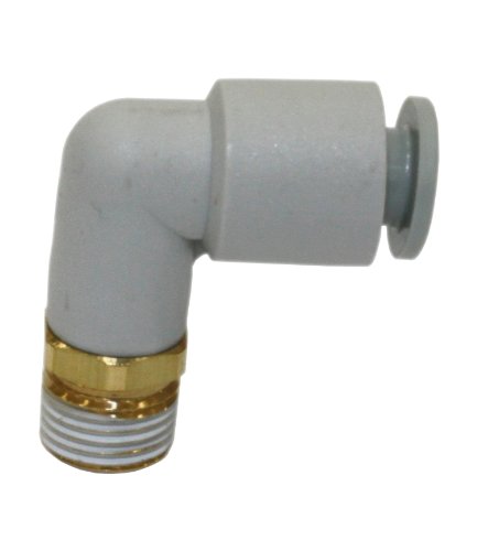 SMC KQ2L23-02AS PBT & Brass Push-to-Connect Tube Fitting with Sealant, 90 Degree Elbow, 3.2 mm Tube OD x 1/4" BSPT Male