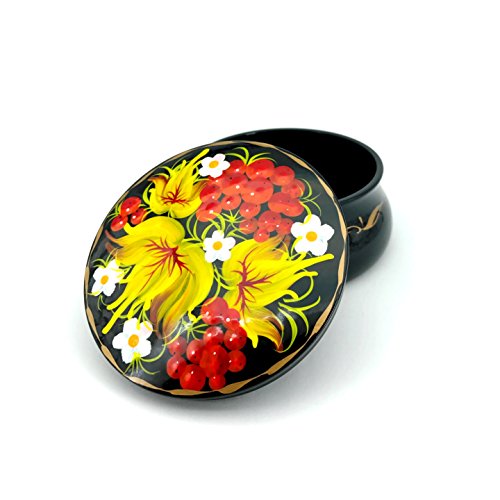 Carefully made of wood, lined on the inside with soft velvet, hand decorated with high quality acryl paints and coated with deluxe lacquer finish (4 layers!). Made in the heart of Europe - Central Ukraine.