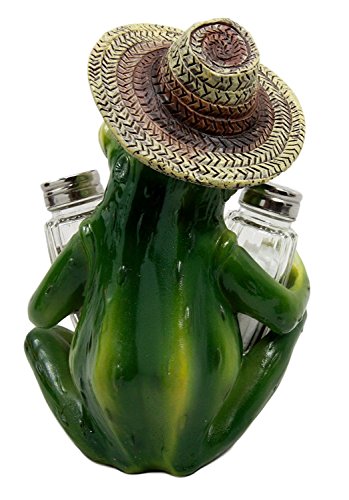 Pond Picnic Frog Wearing Sombrero Hat Salt Pepper Shakers Holder Figurine Set 7.25"H