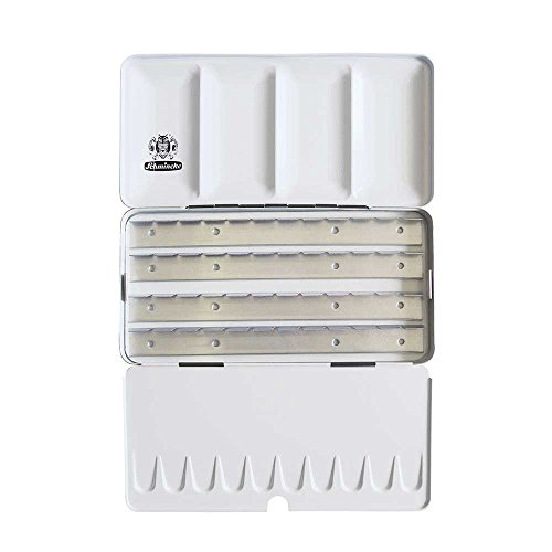 -. Feature : Create a personal unique pallet of colors / Empty set holds 24 full or 48 half pans of Horadam Aquarell paint / Black enamel exterior with a white enamel interior / Reusable and easy to transport / Convenient foldout palette wells