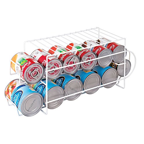 mDesign Two Tier Soda and Food Can Dispenser Rack for Fridge, Pantry, Cabinet - White
