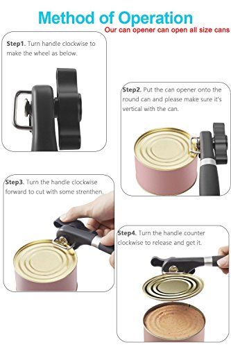 ▶EASY TO USE: Our can opener are extremely durable and heavy duty,the stainless steel blade.The large manual non-slip turn knob prevents hand slipping making it easy for anyone to use.This safety feature creates dull, smooth edges around the can making the can safe to touch and preventing injuries.