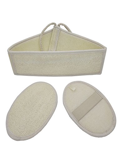 - 1)SAFETY AND SOFTY: Loofah back scrubber & sponge pad can exfoliate to make the skin smooth. 100% natural ingredients-loofah and terry cloth, non-toxic