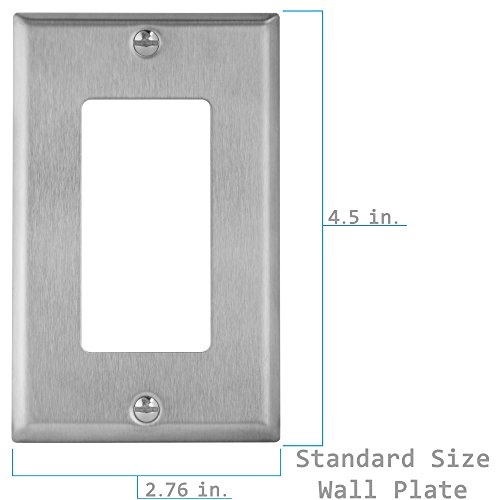 Specifications: Universal design allows easy retrofitting to any decorator/ rocker light switch or power outlet. Decorator stainless steel wall plate measures 2.76” Length x 4.50” Height x.25” Thick