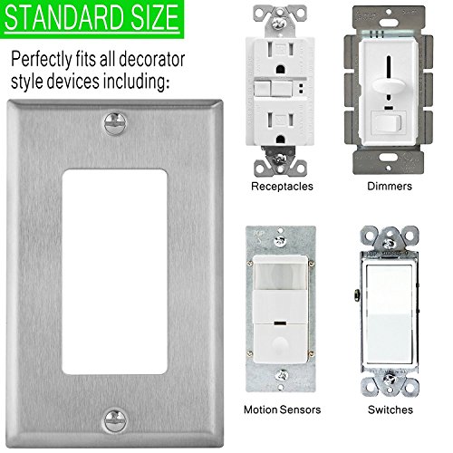 Enerlites 7731-STICKERED 1 Gang Stainless Steel Wall Plate for Decorator Switch, Outlet, GFCI Device