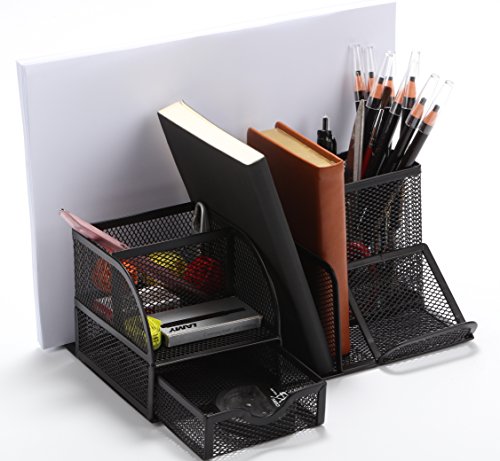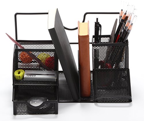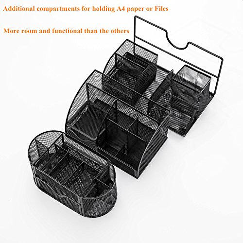 Vencer Versatile Office Supply Caddy, Desk Organizer and File Stand (Black) VOO-004 10.8 x 7.1 x 6.7 inches