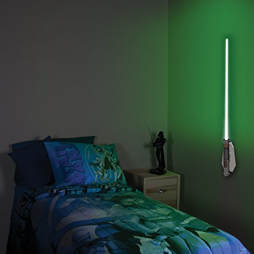 -. Feature : Green light-up Lightsaber room light / Authentic sound effects and Luke Skywalker hilt design / Remote Controlled / Easily Mounts to Wall / Science learning poster included