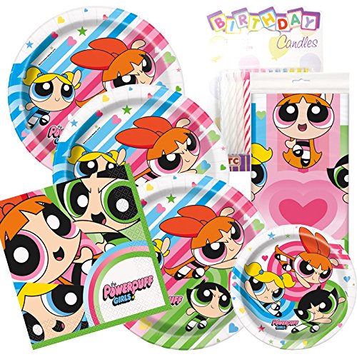 Powerpuff Girls Theme Plates and Napkins Serves 8 With Table Cover And Birthday Candles