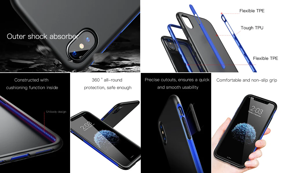 Baseus Luxury Thin Hard Plastic + TPU Hybrid Armor Anti Knock Shockproof Case