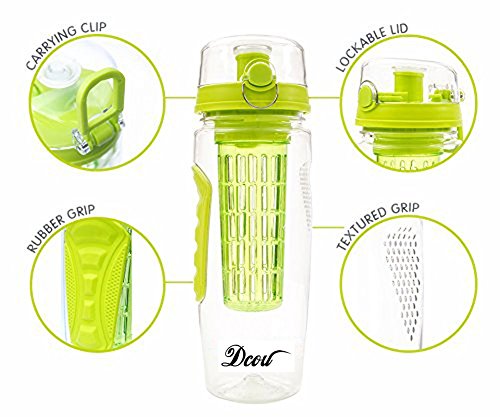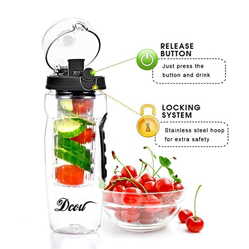 -. Feature : ★UPGRADED BOTTLE-We have updated sports water bottle to include everything you wanted. We increased the size to 32 ounces, included a convenient thumb releasing flip top lid, added dual no-slip grips and a carrying loop. Take the largest infuser bottle to you! / ★ BPA FREE & LEAK PROOF - DCOU infusers are made of premium Eastman TRITAN. Not only is TRITAN durable and shatter proof, it's 100% BPA free,FDA approved. No harmful chemicals for your hydration needs. Silicone seals and locking latch ensures a worry free leak proof experience. Ready to go anywhere that you are! Perfect for gym, work and beach. / ★SIMPLE TO USE-DCOU infused bottles are so well designed , simple to use and easy to Clean, you'll use it every day! In less than 2 minutes you can be drinking HEALTHY FLAVORFUL water! / ★EASY TO CLEAN-Save time when washing by simply placing everything in the dishwasher as the bottle completely disassembles and is entirely dishwasher safe! / ★ LIFETIME WARRANTY - We're so confident in either product quality or customer service, check out our store's feedback. Every item comes with a LIFETIME warranty! 100% Satisfaction garanteed! If you are not satisfied for any reason,we will refund you without any question. NO risk on try!