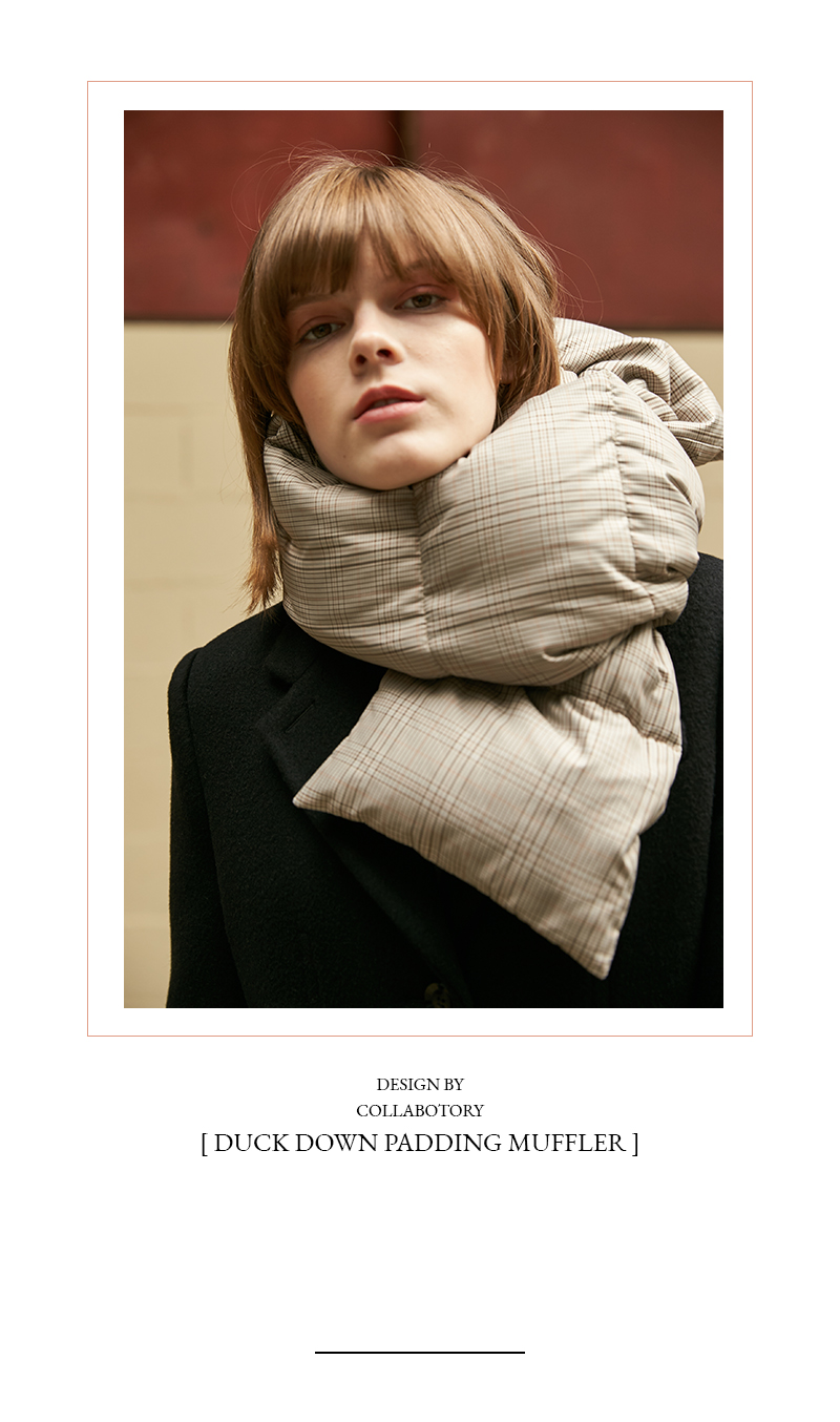 point : 볼륨감 있는 덕 다운 ,가로결 누빔 패딩 머플러