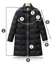 尺码 ①前衣长 ②后中长 ③胸围 ④下摆围 ⑤肩宽 ⑥袖长 ⑦袖臂围 ⑧袖口围