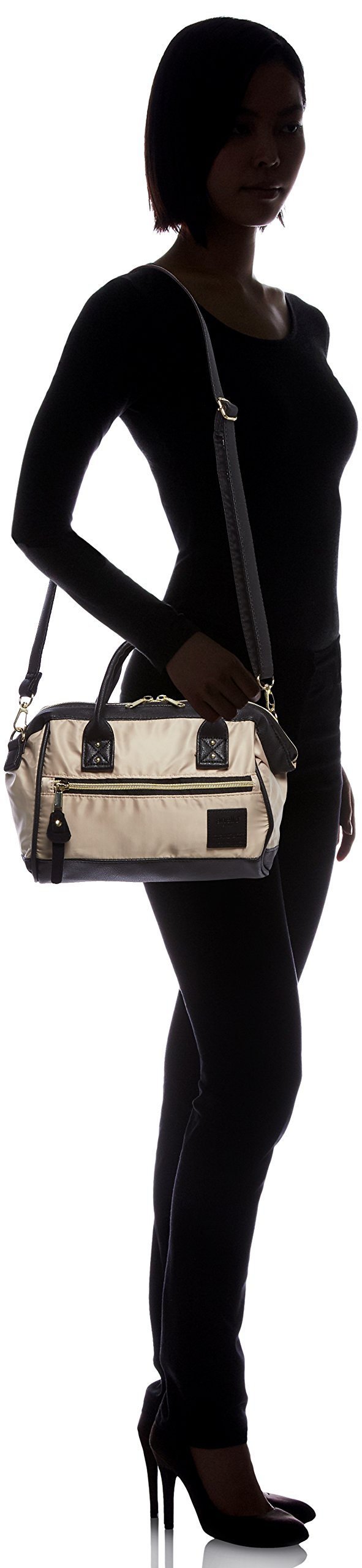 Comb version of high density nylon-like fabric and fake leather appeared in the mouth mini Boston shoulder bag of popularity! It is a refined image of crisp brand logo engraved name with glossy fabrics.