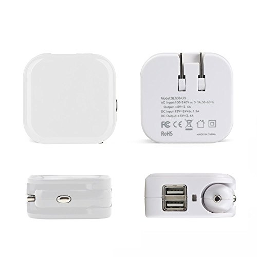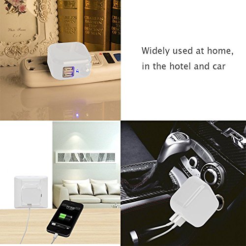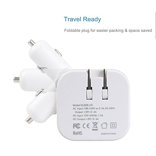 -. Feature : 2-in-1 2.4A Multifunctional Universal Usb Wall Car Charger Combo: Car Cigarette Charger + Home Wall Travel AC Charger / 5V/2.4 A Output wall car charger for iPhone 5, iPhone 5s, iPhone 6, iPhone 6 plus, 5c, 4s, 4, iPad 4 and iPod, Samsung Galaxy S5, S4, S3, S2, Galaxy Note 2, Note 3, HTC one, Kindle, Tablet Computers, MP3 Players, GPS, ebook and More / Beautiful blue LED light, A Soft Internal LED power indicator is lit to build in dimmed LED indicator helps visualize the connection status and does not distract you while driving / Multi-Functional and Life Essential: Widely used in the house or in the car, can charge your car with over-heated,over-current,transient over-pressure protection,There is CE / FCC / ROHS certification / Portable Palm size travel wall car charger, Small and Compact, easy put this portable charger in your pocket and easy to pick up. Folding plug design, it can be transformed into a square about the size of a ring box