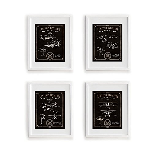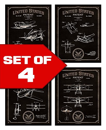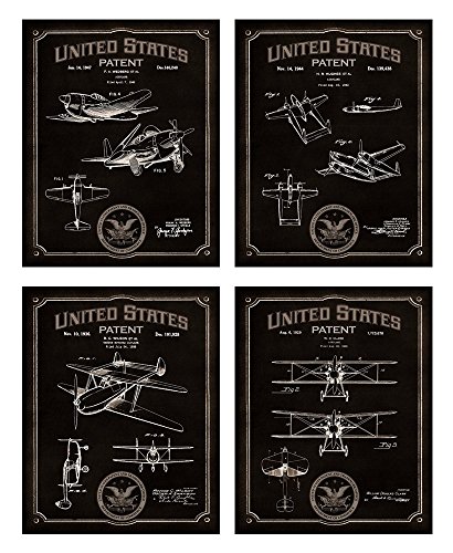 Espresso Brown Airplane Patents Decor Set of Four 8x10 Vintage Aviation Themed Decorative Prints, great for bachelor pad, office, living room. Designed exclusively for Wallables.