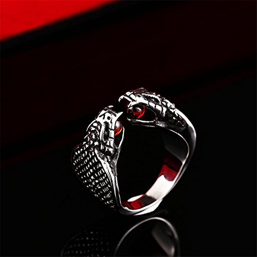-. Feature : Black silver cobra ruby rings for men / Size 7 - 13 available, multiple choices / Healthy material: 316l stainless steel / titanium steel / High quality, no rust, no allergies, no deformation / Package: 1 x ring, comes with free red velvet bag