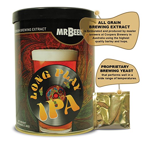 Mr. Beer Long Play IPA 2 Gallon Homebrewing Craft Beer Making Refill Kit with Sanitizer, Yeast and All Grain Brewing Extract Comprised of the Highest Quality Barley and Hops