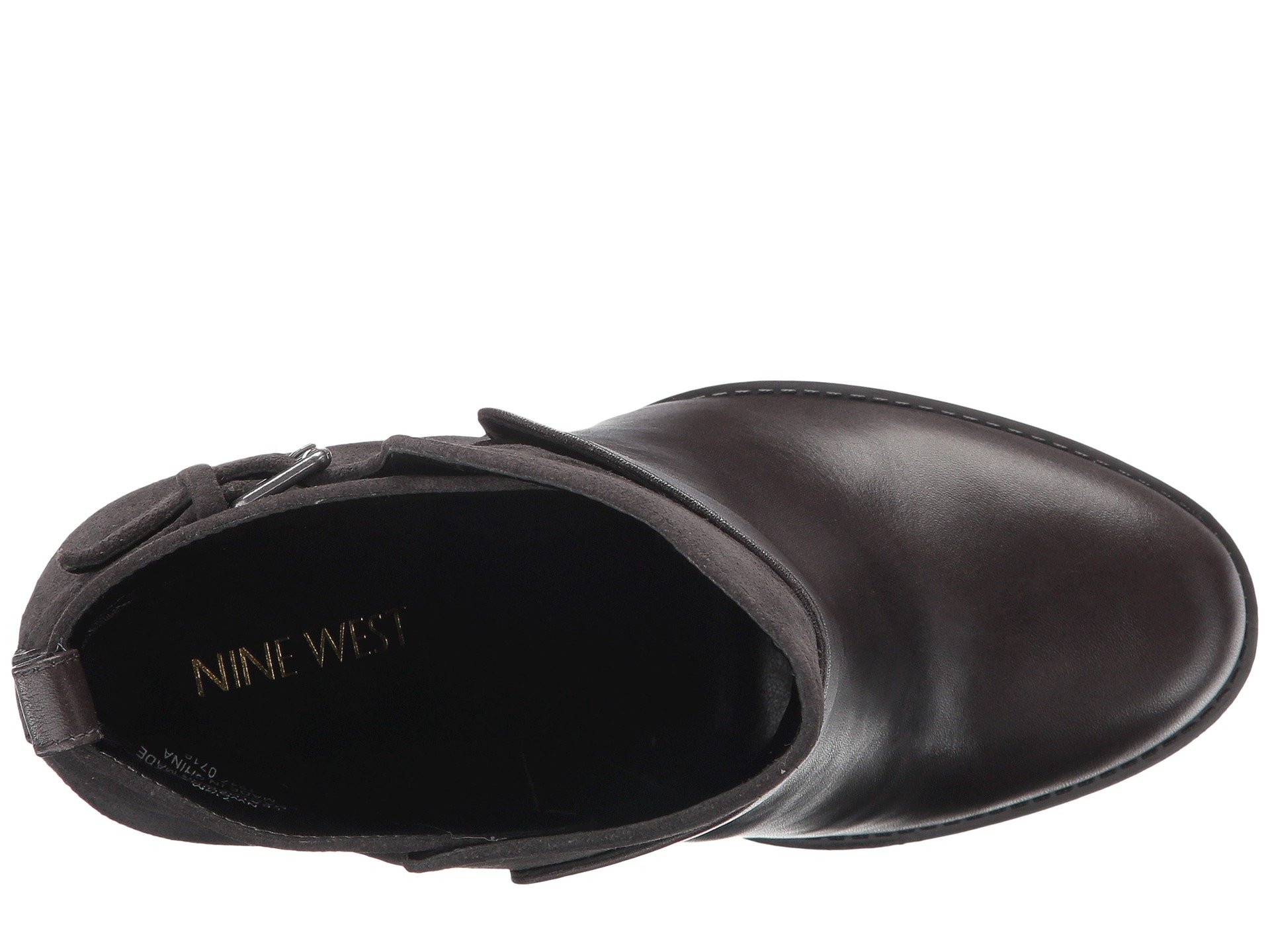 | Product Information SKU: #8780452Revitalize your wardrobe with this Nine West? bootie.Two tone leather upper.Adjustable buckle closure.Round toe.Man-made lining.Lightly-padded footbed. Wrapped block heel.Synthetic outsole.Imported. Product measurements were taken using size 7.5, width M. Please note that measurements may vary by size.Weight of footwear is based on a single item, not a pair.Measurements: Heel Height: 3 1?4 in Weight: 13 oz Circumference: 11 1?2 in Shaft: 6 in |