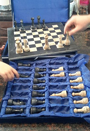 Beautifully handcrafted with premium quality coral and black fossil marble, this chess set exudes a royal charm with an artistic appeal. If you enjoy the heavy feel of onyx chess set marble and coral pieces and want an aesthetic touch in your chess game, this is the perfect choice. The chess board presents an allure that emanates natural beauty and accentuates your experience with its highly polished playing surface. It is an excellent playing option for indoor as well as outdoor use, and it doesn't get affected with the moisture content of the environment. Whether it's a breezy location or a day with high humidity, nothing can stop you from enjoying your game. The marble and coral chess pieces are discerningly handmade with finest craftsmanship and showcases high degree of precision in design and style. Mesmerize your guests with its majestic beauty and let them adore the eminence that speaks of an imperial milieu, a setting that reverberates with a dignified glory; this luxurious chess set has it all.Feature