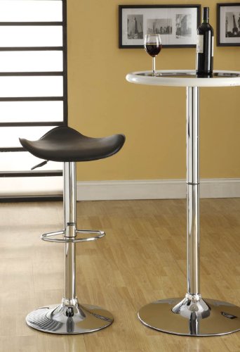 - Feature : Chrome finish / Wipe clean Black PVC Vinyl seat cover / Seat heights adjusts from 26" to 32" / Adjustable Gas lift stool / The cushion is piled high for extra comfort