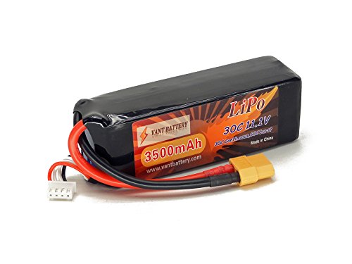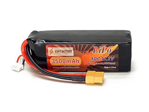 Features: True Capacity and C-Rating Thick 12AWG Discharge Leads XT60 Discharge Plug JST-XH Balance connector Capacity: 3500mAh Voltage: 3S / 3 Cell / 11.1v Discharge Rate: 30C Constant (105A) / 60C Burst (10 sec) (210A) Charge Rate: 2C (7.0A) Watt Hours: 38.85Wh Weight: 7.3 oz / 209g (including wire plug) Dimensions LxWxH: 99.2 x 34.1 x 27.8 mm Dimensions w/ Wires folded at end of pack: 103.2 x 34.1 x 27.8 mm *Note that dimensions may vary by ± ~1mm. Discharge Plug: XT60 Connector Balance Plug: JST-XH Includes: 11.1V 3500mAh 3S Cell 30C-60C LiPo Battery Pack w/ XT60 Connector Vant Battery Warranty w/ Lifetime Replacement Plan Equipment Needed: LiPo Balance charger capable of charging 3 cell LiPo batteries Equipment Recommended: LiPo Safe Charging Bag/Sack/Pouch, Cell Voltage Reader, Extended Battery Strap if required by your vehicle. Safety Notes Warnings: LiPo batteries are potentially hazardous. Improper usage can cause fire or explosion. Charge and Store battery in LiPo-Safe Bag away from flammables on a concrete surface. Charge using a LiPo compatible Balance Charger ONLY! Never Charge above 4.2V per cell. Never Discharge below 3.2V per cell. Always use under adult supervision. The end-user is fully responsible for any results in using this battery pack. 0 |