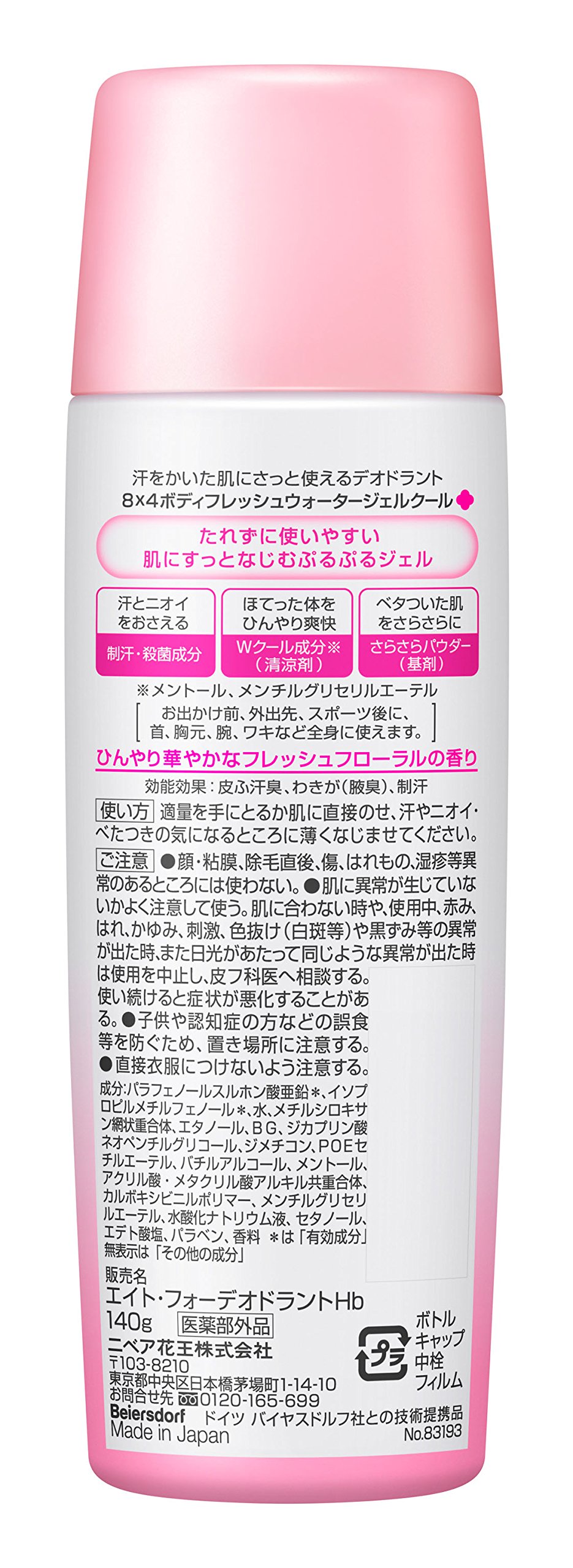 ● antiperspirant ingredient keeps sweat, bactericidal ingredient prevents odor ● W Cool ingredient * (refreshing agent) warms up the body warmed up menthol, menthyl glyceryl ether ● smooth skin with base (base)