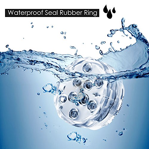 - Thoughtful design: All the led lights are waterproof.The material of the light is durable plastics. It can shockproof,anti-friction.The lights can be controlled by RGB wireless remote control.circled by waterproof ring; added iron plate on each pool light keeps it sinking underwater
