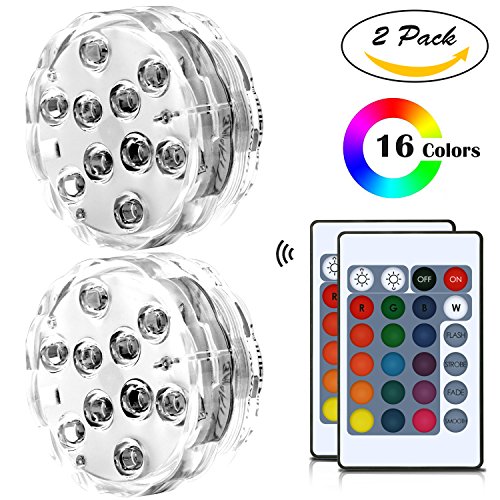 Submersible LED Lights Remote Controlled, 16 Color Changing Waterproof Lights for Aquarium Swimming Pool Vase Base Fountain Garden Party Weeding Christmas Halloween