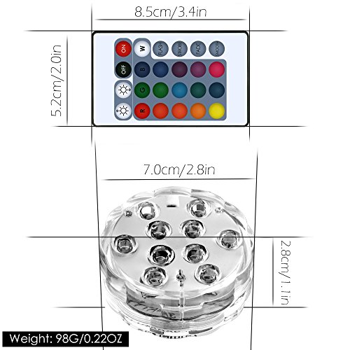 - Reusable submersible LED light, super bright 10 led built in, waterproof and cordless, perfect for event party or home decoration, like lighting up vases, bowls, or any water filled containers. -Can turn a boring bowl into a beautiful and exciting centerpiece, are often used for event design