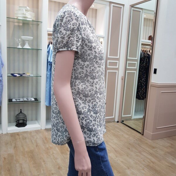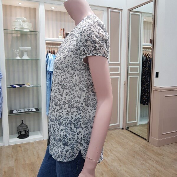 플라워프린트 쉬폰블라우스55기준 총장62cm