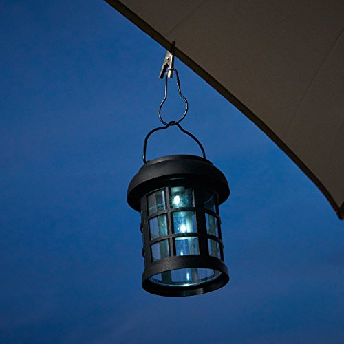 Open bottom lantern is ideal for clipping to umbrella for ambient lighting around table