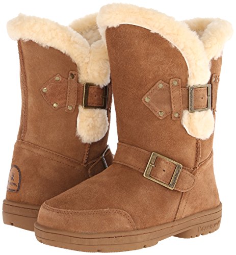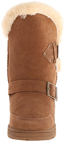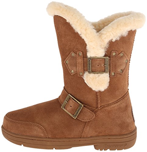 Studio : Bearpaw Publisher : Bearpaw Binding : Shoes Product Description You won't fully appreciate the meaning of relaxation until you slip on the Madeline. The 9' height makes it easy to slip on and off, and the BEARPAW branded buckles and rivet details give it a fun and fashionable look. This boot will get you through those long winter months in comfort. Material: Sheepskin. 0