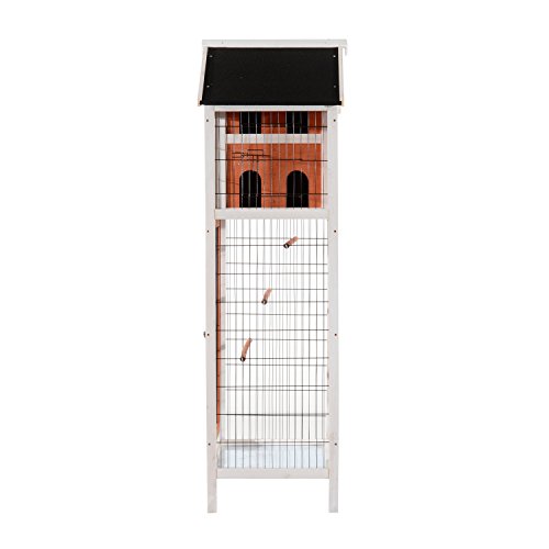 -. Binding : Misc. -. Brand : Pawhut -. EAN : 0842525100847 -. Feature : Compact vertical design for 3-4 birds to live comfortably / With bar spacing of 1" and made out of metal, it will keep your birds safe from potential harm / Large door offers access to main area and small door offers access to nesting area / 3 staggered perches for perching / Assembly required -. Label : Pawhut -. Manufacturer : Pawhut -. Model : D10-036 -. MPN : D10-036 -. PackageQuantity : 1 -. PartNumber : D10-036 -. ProductGroup : Pet Products -. ProductTypeName : PET_SUPPLIES -. Publisher : Pawhut -. Studio : Pawhut -. Title : Pawhut 64" Vertical Outdoor Aviary Bird Cage - White/Dark Brown -. UPC : 842525100847