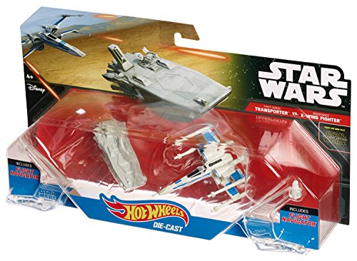 -. Binding : Toy -. Brand : Hot Wheels -. Color : New Silver -. EAN : 0887961127683 -. Feature : Kids will love these 2-packs of iconic Star Wars vehicles / Flight Navigator lets kids "fly" their starships / Flight Navigator doubles as a display stand so kids can show off their collection / In a collectible scale that's small enough to fit in a pocket / Makes a great gift for fans of all ages -. IsAdultProduct : 0 -. ItemPartNumber : CKJ81 -. Label : Hot Wheels -. Manufacturer : Hot Wheels -. Model : CKJ81 -. MPN : CKJ81 -. PackageQuantity : 1 -. PartNumber : CKJ81 -. ProductGroup : Toy -. ProductTypeName : TOYS_AND_GAMES -. Publisher : Hot Wheels -. Size : Standard -. Studio : Hot Wheels -. Title : Hot Wheels Star Wars: The Force Awakens First Order Transporter vs. X-Wing Fighter Starship 2-Pack -. UPC : 087961127687 -. Warranty : 1 year warranty against manufacturer defects