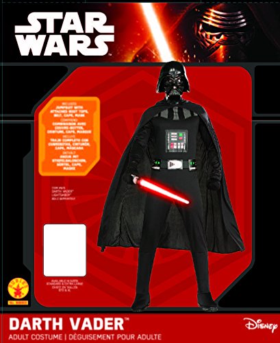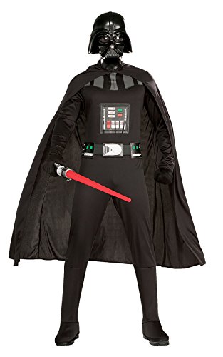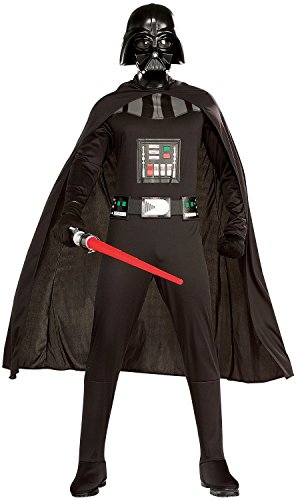 Join the dark side this halloween in this darth vader costume featuring the iconic full body black jumpsuit with flowing black cape, screen print belt, attached boot tops, and injection molded mask. Available in standard and x-large sizes. Rubie's Costume company has brought costumes and accessories to the world since 1950. As the world's costume leader, we take seriously the mission to make dressing up fun mascots, rental quality costumes, masks, wigs, accessories, shoes, and every significant licensed costume you want to wear can be found under the rubie's brand. Still family owned, still family focused rubie's brings you fun for every season: halloween, christmas, mardi gras, easter, and all in-betweenFeature