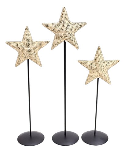 Set of Country House Rustic Burlap Star Pedestals in 3 Sizes