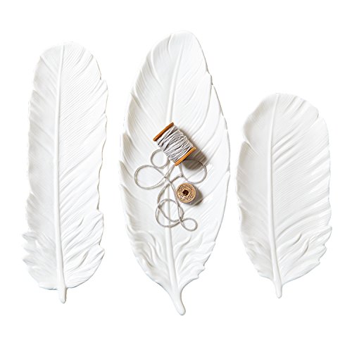 Two's Company 51445-EA Set of 3 White Feather Trays