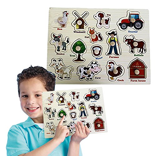 -. Binding : Toy -. Brand : Toy Cubby -. EAN : 0641938541540 -. Feature : 1 set Wooden Pegged Farm Animals Puzzle Board. / Board measures 12 x 9 inches with 2 to 3 inches Farm animals wooden puzzle pieces. / Helps your children to be familiar with Farm animals . Features printed name of the animals next to each animals puzzle pieces. / Promotes the development of your child's hand-eye, fine motor and visual perception skill. / For kids 3 - 8 years old. -. IsAdultProduct : 0 -. ItemPartNumber : TC467 -. Label : Toy Cubby -. Manufacturer : Toy Cubby -. MPN : TC467 -. PackageQuantity : 1 -. PartNumber : TC467 -. ProductGroup : Toy -. ProductTypeName : TOYS_AND_GAMES -. Publisher : Toy Cubby -. Studio : Toy Cubby -. Title : Toy Cubby Kids Toddler Wooden Pegged Farm Animals Puzzle Board Set- 2 to 3 inches Farm Animals puzzle piece -. UPC : 641938541540
